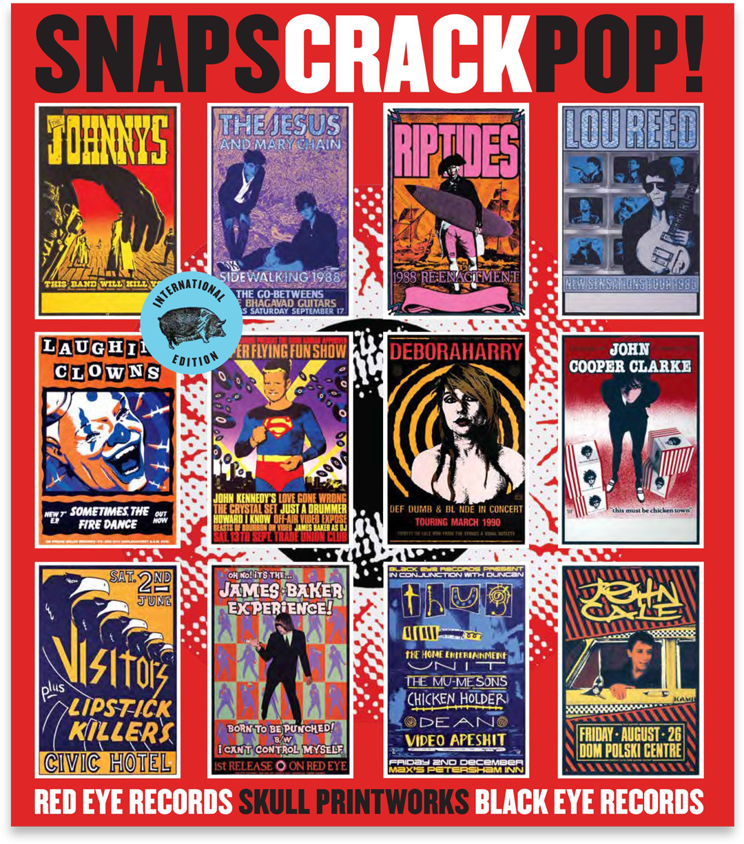 A book containing a survey of the Skull Printworks output was issued in October 2018. ‘SNAPS CRACK POP!’ also documents the preceding years resulting in the establishment of Skull Printworks, as well as all that has followed. Skull Printworks is now back as an active entity, first to republish the ‘SNAPS CRACK POP!’ International edition, then to action some exciting new projects involving the popular designs executed by John Foy in his prime. Watch this website!