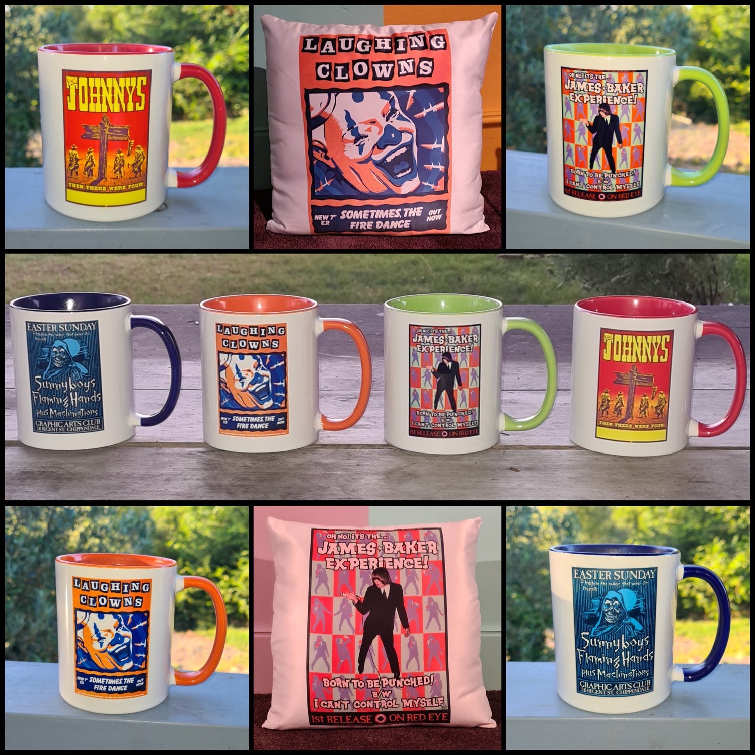 The original poster designs of John Foy now celebrated in quality limited edition cushions and coffee cups.